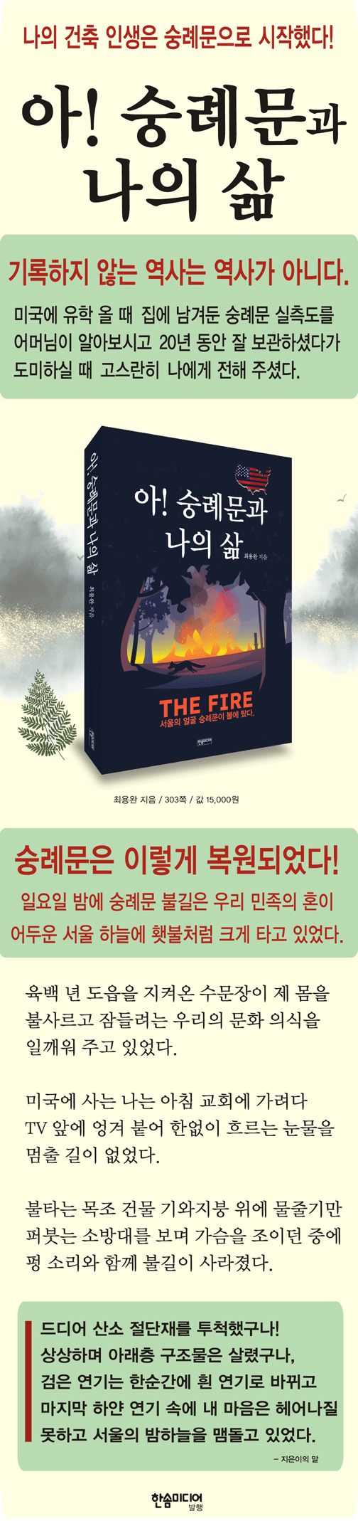 맥박을 잃어가고 있었다. 나의 젊음을 통째로 바쳐 일한 건축 인생에 최고의 자랑이 검고 하얀 연기로 서울의 하늘 속으로 사라지고 있었다. 목사인 내 아내도 교회를 잊고 내 옆에서 같이 슬퍼하고 있었다.